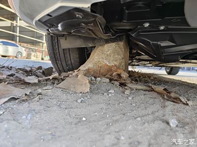 之前在路边临时停了下,真心没看到这个石头,也没有什么碰撞感,等再起步就感觉卡住了,新车也没经验,从隔壁修车店借了个千斤顶把石头搬走就开走了,之后开了200km包括上牌时候车检都没发现什么不对