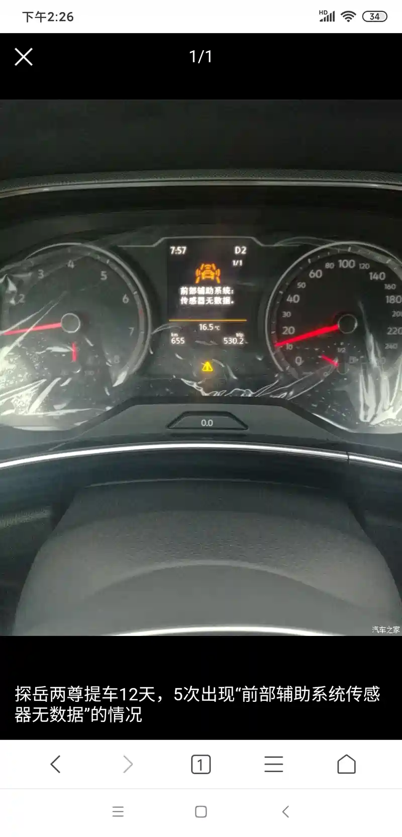 提示说前部感应传感器无数据,这个配置前部有感应器吗?怎么产生的这个问题?求大神解答