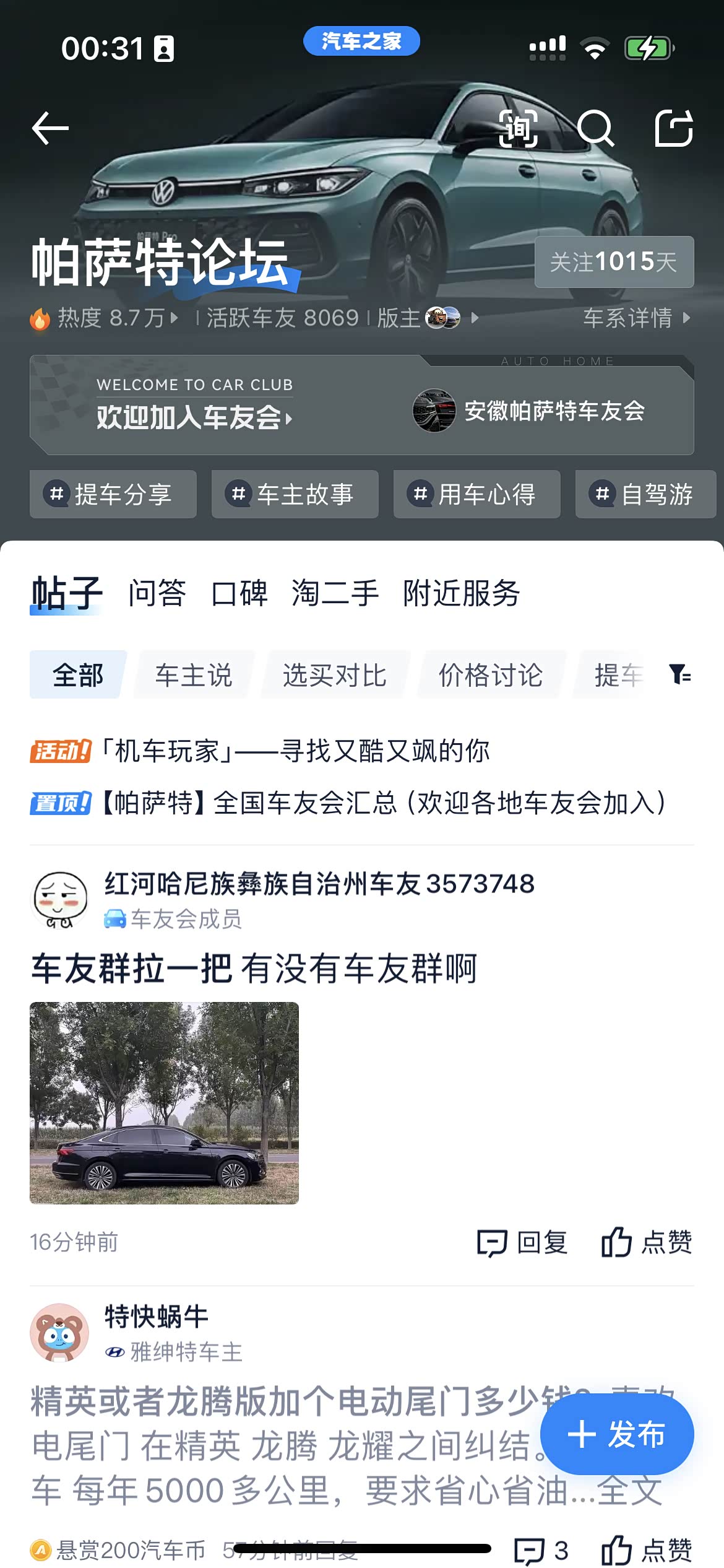 问 车友群拉一把 删除 推荐精华 置顶 取消置顶 关闭回复 打开回复 推荐编辑 楼主禁言 移动帖子 重置头像 操作记录 红河哈尼族彝族自治州车友3573748 0浏览 · 2025-04-12 00:14· 发布于广东 有没有车友群啊车友群有吗 举报 打开汽车之家 阅读体验更好 相关问题 更多 问请问帕萨特减配了吗 0回答 问问个车的问题, 0回答 问启动空调怠速不上升 0回答 问24款帕萨特 0回答 问车钥匙无法锁车 0回答 问记录仪怎么自己安装? 0回答 全部回复 只看楼主 MALH 关禁闭 已屏蔽 帕萨特 在帕萨特论坛的主页,你看置顶的有全国的帕萨特论坛的车友会。你可以选择加入全国的帕萨特车友会,也可以添加你们地区的车友会的微信。 2025-04-12 00:33 来自四川 回复 沙发 屏蔽此人 举报 删除 取消删除 禁言 重置头像 共有条对话 > 中庸之道4925 关禁闭 已屏蔽 揽境 能来汽车之家的绝大多数都没有车友群,因为那种群没有什么实质用处。你可以微信搜索车友群,应该就可以看到相关的群,有很多加入是需要交群费的。 2025-04-12 00:35 来自内蒙古 回复 板凳 屏蔽此人 举报 删除 取消删除 禁言 重置头像 共有条对话 > GlANT_XTC_SLR3 关禁闭 已屏蔽 现在的新车都是没有纸质版使用说明书的,在4s店提车之后,销售会帮着下载,并且注册一个大众的app,把车辆认证完之后,在这个上面就可以看到电子版的使用说明书,直接就可以在线查看。 2025-04-12 16:36 回复 地板 屏蔽此人 举报 删除 取消删除 禁言 重置头像 共有条对话 > 还想在主楼增加内容?点击续写主楼内容 登录 参与更多互动 发表回复 打开App,查看更多评论 首 页 上一页 下一页 末 页 跳 转 取 消 还想在主楼增加内容?点击续写主楼内容 登录 参与更多互动 系统故障 发表回复 图片最多上传9张 微信好友 微信朋友圈 新浪微博 QQ好友 QQ空间 取消 相关推荐 加载中