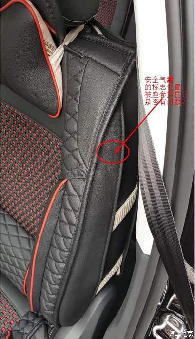 前排座椅靠背侧面的安全气囊被座椅套遮挡住了,是否有问题?卖座椅套的人说,这里有松紧带的,没有问题,心里不踏实,来这里请明白人指点一二,谢了!