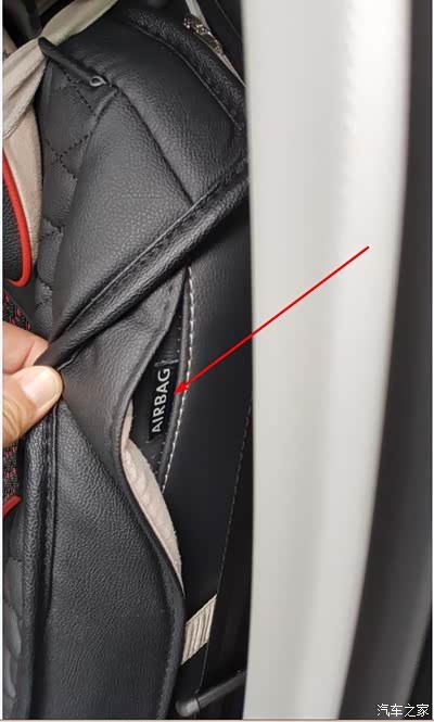 箭头所指的位置就是安全气囊标签位置,这里被座套挡住了,不知道是否有安全问题?