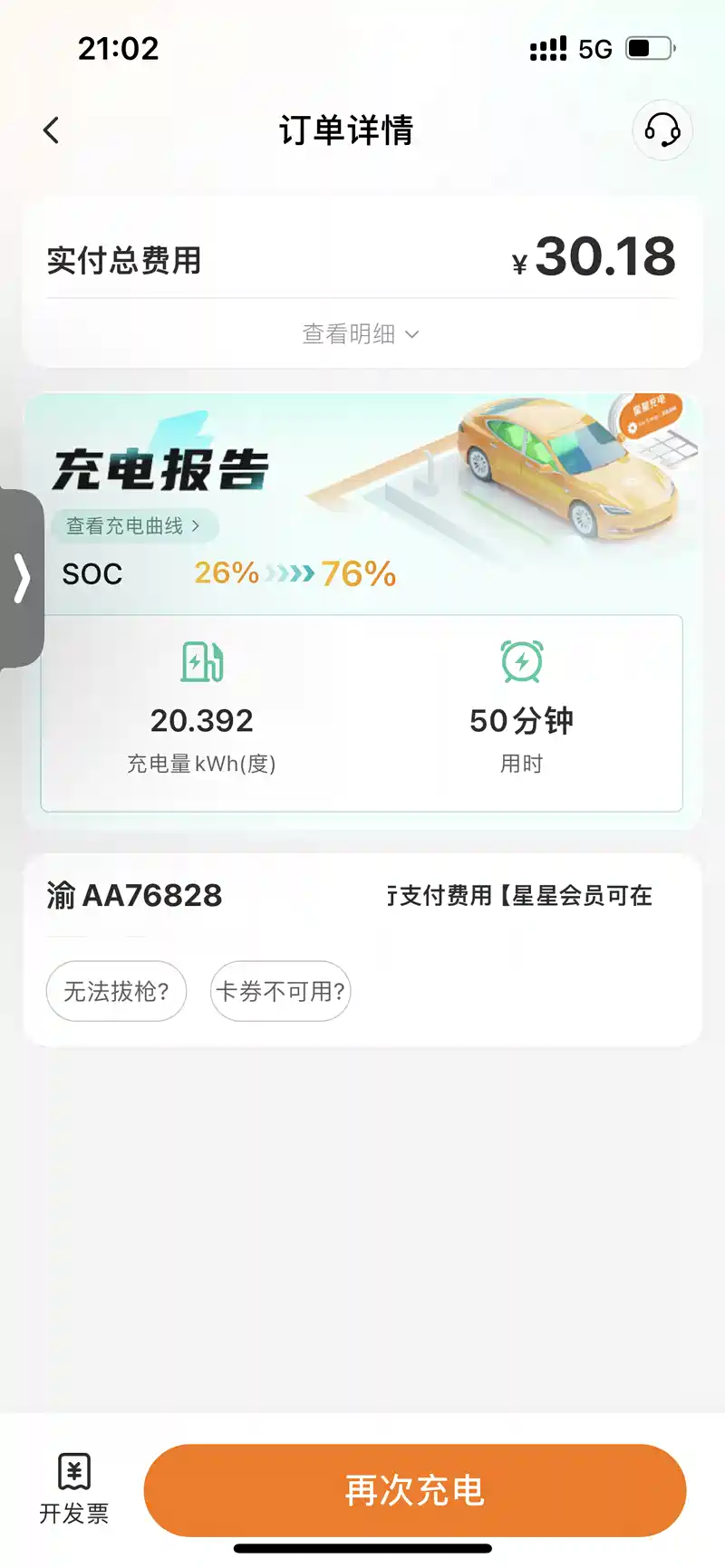 问 关于奔奔E-star使用快充的疑问 删除 推荐精华 置顶 取消置顶 关闭回复 打开回复 推荐编辑 楼主禁言 移动帖子 重置头像 操作记录 MikeRen1922 0浏览 · 2024-12-01 21:13· 发布于重庆 刚搞了台二手车,急用就去快充站充了一下电,账单如图,这个图片意思是充到76%就停止充电了?如果这样,那充电桩就有问题,满充不是也才32度电吗?求各位大神指教! 举报 打开汽车之家 阅读体验更好 相关问题 更多 问充电断充 0回答 问奔奔转向问题 0回答 问奔奔方向盘转向问题 0回答 问车停一夜掉续航? 0回答 问求助解惑 0回答 问大家能收到车辆信息不 0回答 全部回复 只看楼主 汽修刘师傅 关禁闭 已屏蔽 丰田bZ3 这也需要确认进一步排查,并不能完全确定是充电桩的问题。比如说可以检查电池的状态,读一下bcM里面的数字等。 2024-12-01 21:18 来自辽宁 回复 沙发 屏蔽此人 举报 删除 取消删除 禁言 重置头像 共有条对话 > 小吕飞oo 关禁闭 已屏蔽 启辰D60EV 你是不是就预存了30块… 2024-12-05 04:52 来自山西 回复 板凳 屏蔽此人 举报 删除 取消删除 禁言 重置头像 共有条对话 > 德阳车友8989659 关禁闭 已屏蔽 长安奔奔E-Star 预付是充到少于1度电钱停冲,预存是少于10元停冲。这个76%是不准确的,一般出现在没注册或注册第一次充电,接近满电压就停冲,SOC下次纠正。还有个可能,充电设置是90%封顶了。 2024-12-06 10:44 来自四川 回复 地板 屏蔽此人 举报 删除 取消删除 禁言 重置头像 共有条对话 > 还想在主楼增加内容?点击续写主楼内容 登录 参与更多互动 发表回复 打开App,查看更多评论 首 页 上一页 下一页 末 页 跳 转 取 消 还想在主楼增加内容?点击续写主楼内容 登录 参与更多互动 系统故障 发表回复 图片最多上传9张 微信好友 微信朋友圈 新浪微博 QQ好友 QQ空间 取消 相关推荐 加载中