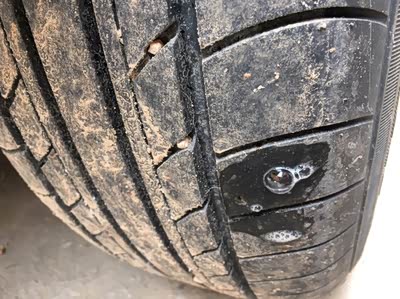 路面上的轮胎“杀手”——铁钉很多,只是平时都是安静的“躺”在哪里,可雨水一冲刷,铁钉就滚到了路边,并且因为头重脚轻,通常都会变成“四脚朝天”的摸样。如果你正好经过那里,赶巧可能就会被扎到。所以,雨天行车尽量少走路边,多走路中,被扎的几率会变小。出门前先扫一眼车胎幸亏记者这次出门前看了眼车胎,如果赶上大意的时候,开车上了高速才发现有问题那该多危险!所以,记者在这里提醒车主朋友们,养成个好习惯,每天出门前先检查下车胎,包括看一下车前车后有没有障碍等,减少意外的发生。