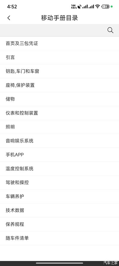 点进去显示的就是自己车型的用户手册,方方面面写的很详细,基本上不用问其他车友,自己就能找到相关的问题。