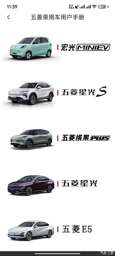 当然,其他车型也是可以的,只要是五菱品牌的汽车在五菱APP上都可以找到对应的车型手册,只需要切换车型就可以。