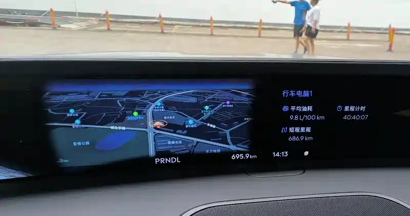 第1箱油开到680多公里,油量已经快到E线。显示屏显示剩余油量还可以行驶60公里。红灯还没亮起,不敢再开,心里有点发毛。进站加油。