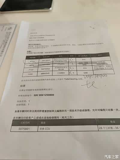 有车友碰到类似问题么?这个是4S店给的单子;