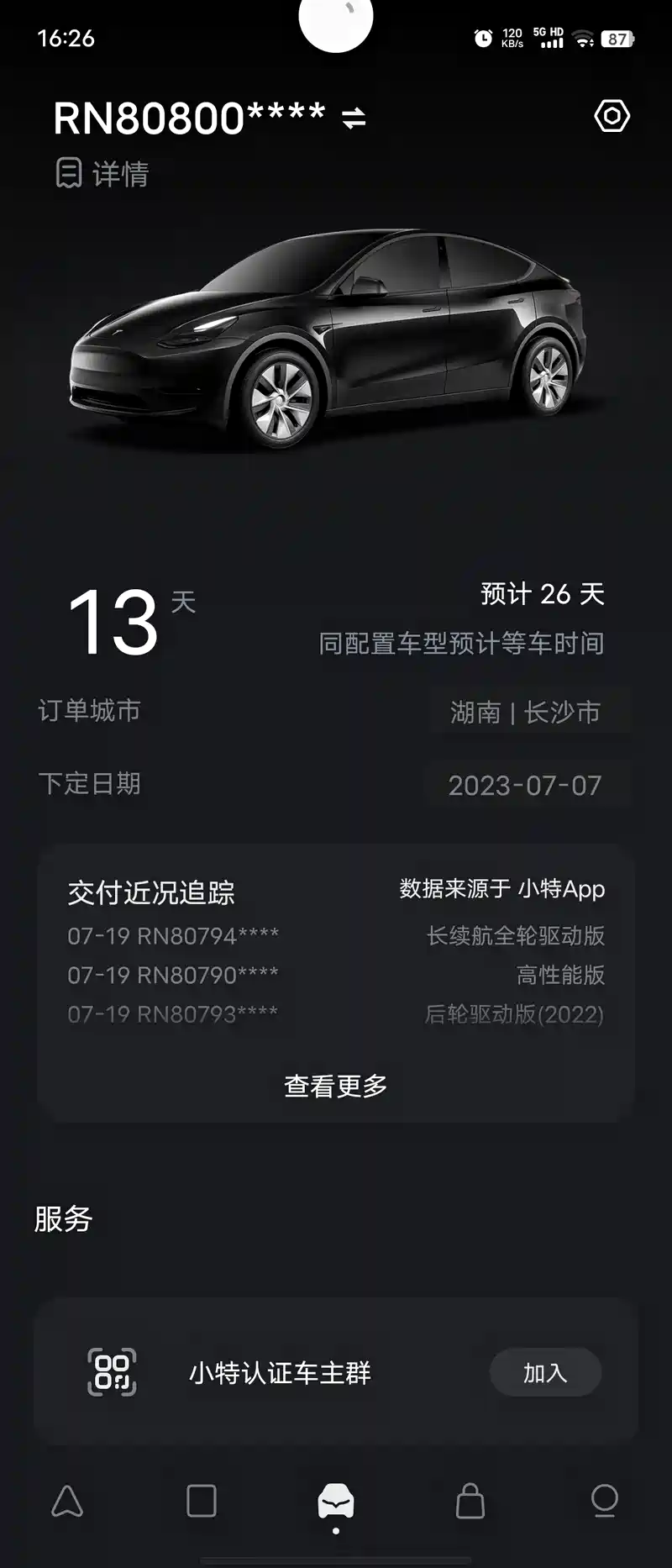 问 这个是还要等26天吗? 删除 推荐精华 置顶 取消置顶 关闭回复 打开回复 推荐编辑 楼主禁言 移动帖子 重置头像 操作记录 ltboy01 0浏览 · 2023-07-19 16:50· 发布于湖南 到底是从7月7日算等26天,还是怎么算的? 举报 打开汽车之家 阅读体验更好 相关问题 更多 问延保的人多吗? 0回答 问我该如何维权? 0回答 问Y的高速续航有多少 0回答 问关于FSD的落地问题 0回答 问如图,怎么解决? 0回答 问老Y,胶条异响 0回答 全部回复 只看楼主 sna5213 关禁闭 已屏蔽 威驰 不准,建议删了,想知道还是群里问交付,他会告诉你现在交车的是几号的订单,自己再根据几号下单推算 2023-07-19 17:00 来自河北 回复 沙发 屏蔽此人 举报 删除 取消删除 禁言 重置头像 共有条对话 > 温斯顿大薯条 关禁闭 已屏蔽 说了无数遍,这是收集车主信息的第三方app,根本不是特斯拉自己的东西,怎么可能准呢……而且这也会导致车主信息被泄露挪用,风险不小 2023-07-19 17:41 来自福建 回复 板凳 屏蔽此人 举报 删除 取消删除 禁言 重置头像 共有条对话 > Wayne__xj 关禁闭 已屏蔽 这个APP的提车时间推算就算了吧,真不准。 2023-07-19 19:40 来自新疆 回复 地板 屏蔽此人 举报 删除 取消删除 禁言 重置头像 共有条对话 > 妳的味道 关禁闭 已屏蔽 雷克萨斯ES 6.30日定的车还没声音 2023-07-19 19:51 来自江苏 回复 屏蔽此人 举报 删除 取消删除 禁言 重置头像 共有条对话 > Mob_black 关禁闭 已屏蔽 Model Y 现在794还没提,一个号段差不多一周,你距离现在还有6周左右。 2023-07-19 20:16 来自贵州 回复 屏蔽此人 举报 删除 取消删除 禁言 重置头像 共有条对话 > Vern_zhang 关禁闭 已屏蔽 这个就是个热闹看看,还是要看你交付给的时间。现在正常要到5周左右。 2023-07-19 20:24 来自广东 回复 屏蔽此人 举报 删除 取消删除 禁言 重置头像 共有条对话 > 季伯蹴 关禁闭 已屏蔽 我要申诉 该行程已被楼主删除 查看回帖内容查看操作记录 2023-07-19 23:22 来自湖北 屏蔽此人 删除 取消删除 禁言 重置头像 共有条对话 > 龙田田军 关禁闭 已屏蔽 你这不错还有倒计时,我这就干等 2023-07-19 23:44 来自上海 回复 屏蔽此人 举报 删除 取消删除 禁言 重置头像 共有条对话 > milancheng7 关禁闭 已屏蔽 Model 3 差不多 2023-07-20 06:58 来自安徽 回复 屏蔽此人 举报 删除 取消删除 禁言 重置头像 共有条对话 > 德阳车友2211814 关禁闭 已屏蔽 第三方APP,包括京东,我都从不在第三方买东西,售后没得自营的好 2023-07-20 10:23 来自四川 回复 屏蔽此人 举报 删除 取消删除 禁言 重置头像 共有条对话 > HCIC 关禁闭 已屏蔽 Model Y 别着急万一又降价了呢,我等到订单最后才排产,提车前两天等到3500的优惠。 2023-07-25 13:54 来自贵州 回复 屏蔽此人 举报 删除 取消删除 禁言 重置头像 共有条对话 > 南宁车友0530718 关禁闭 已屏蔽 我仅用4天提车 2023-07-25 23:06 来自广西 回复 屏蔽此人 举报 删除 取消删除 禁言 重置头像 共有条对话 > SChow 关禁闭 已屏蔽 大兄弟,用我的引荐码。使用我的引荐链接购买Tesla产品,一起加速世界向可持续能源的转变。http://ts.la/omzs47570 2023-07-29 10:31 来自江苏 回复 屏蔽此人 举报 删除 取消删除 禁言 重置头像 共有条对话 > 还想在主楼增加内容?点击续写主楼内容 登录 参与更多互动 发表回复 打开App,查看更多评论 首 页 上一页 下一页 末 页 跳 转 取 消 还想在主楼增加内容?点击续写主楼内容 登录 参与更多互动 系统故障 发表回复 图片最多上传9张 微信好友 微信朋友圈 新浪微博 QQ好友 QQ空间 取消 相关推荐 加载中