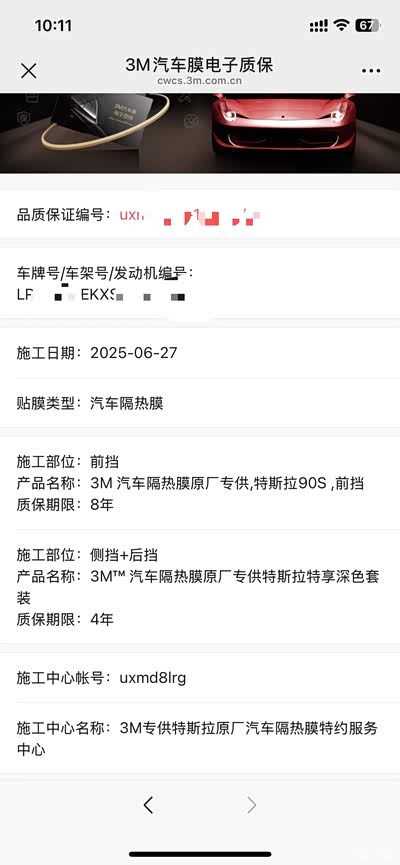 问 请问特斯拉4S店贴的3M膜怎么样?
