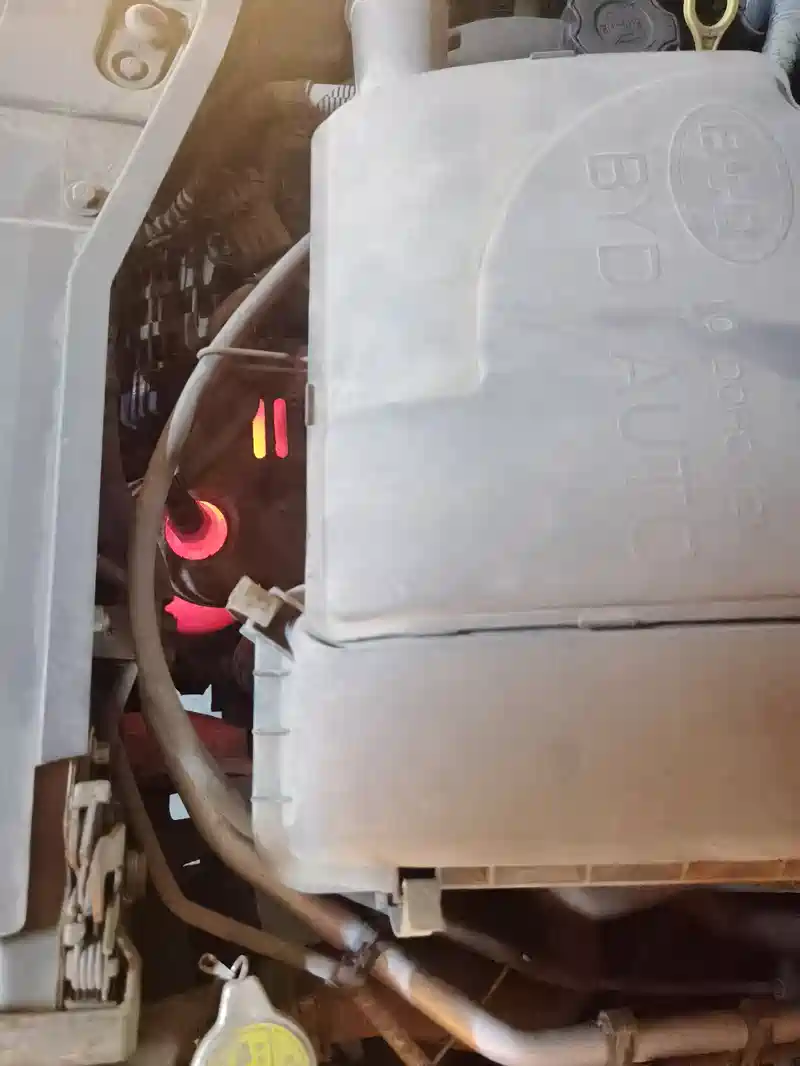 随后灭了车,重新打着,就感觉正常了,声音不那么大,车也不抖了,那个地方也不红了