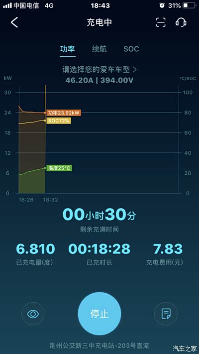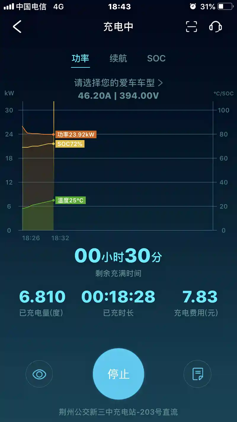 72%电量 充电电流只有46.2安 功率只有23.92千瓦 这是在六十千瓦桩充电 充电功率是不是太小 我从9%充满402公里需要两个小时 这正常吗?