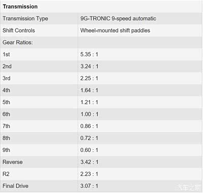楼主你好,我之前的车子是W204的7速变速箱,现在开的是W205的9速变速箱。直观驾驶感受来说,平顺性两者无大差别,但燃油经济性上9速非常优秀。现在驾驶的3.0T双涡轮,在1000公里的行驶过程中,平均油耗为9.2升。另外是加速性能也感觉很大提升,尤其体现在低档位。附图可以看到各档位的系数得到优化。