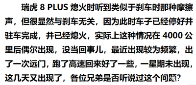 瑞虎8 PLUS熄火时听到类似于刹车时那种摩擦声