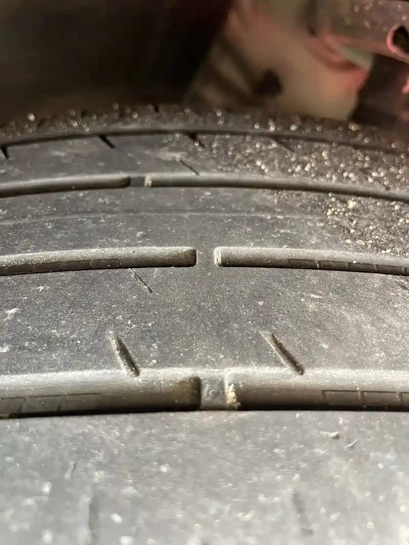 轮胎磨损情况见照片,貌似外侧已与标识点磨平