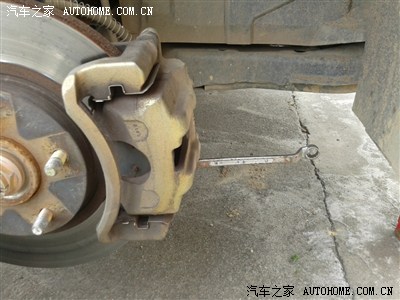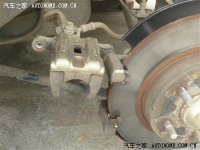 --------翻起这个把刹车泵压盘要压下去才能装上原位的,因为新的刹车片位置宽些。实在压不动就把刹车泵排气孔松开,这样比较轻松,我就是这样办的。不过完工时要排空气!