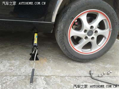 -------因为要前右轮要调换轮胎。(调换的顺序是:前面的轮胎,直接往后面同一边调动,而后面的轮胎是交叉往前面调动的!)所以同时要把左后边顶起,把轮胎取下换到右前轮!其它轮胎步骤一样就不说了!