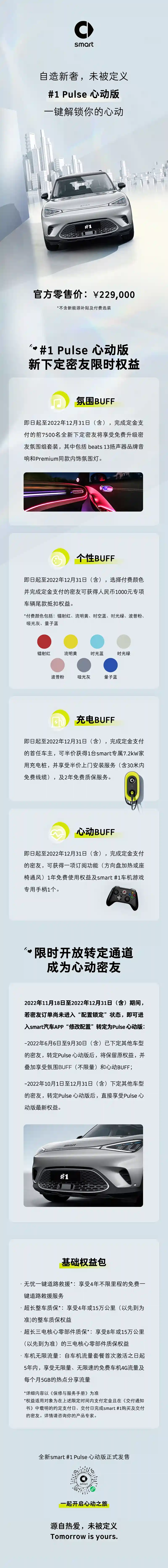 问 smart精灵心动版已发布 你还没有试驾过吗? 删除 推荐精华 置顶 取消置顶 关闭回复 打开回复 推荐编辑 楼主禁言 移动帖子 重置头像 操作记录 smart精灵心动 0浏览 · 2022-11-21 22:46· 发布于江苏 冬季电车续航经验分享 相关车型:smart精灵#1 2022款 Pulse心动版11月18日发布的心动Pulse精灵,就配置来说和顶配版相差无几,关于心动版的下单原则,给到一个时间段,为期到12月31日的限时权益,效仿了巴博斯的选购原则,很有可能高配版无限期延长时间,而心动版将占据主导,稳定性很好的smart,值得你来试驾体验,苏州的车友小伙伴们欢迎留言约试驾了解更多 举报 打开汽车之家 阅读体验更好 相关问题 更多 问有无行李架推荐的 0回答 问奔驰smart451 0回答 问453油耗问题... 0回答 问453谁知道这毛病 0回答 问车友们给推荐下记录仪 0回答 问收一套451前避震 0回答 还想在主楼增加内容?点击续写主楼内容 登录 参与更多互动 发表回复 打开App,查看更多评论 首 页 上一页 下一页 末 页 跳 转 取 消 还想在主楼增加内容?点击续写主楼内容 登录 参与更多互动 系统故障 发表回复 图片最多上传9张 微信好友 微信朋友圈 新浪微博 QQ好友 QQ空间 取消 相关推荐 加载中