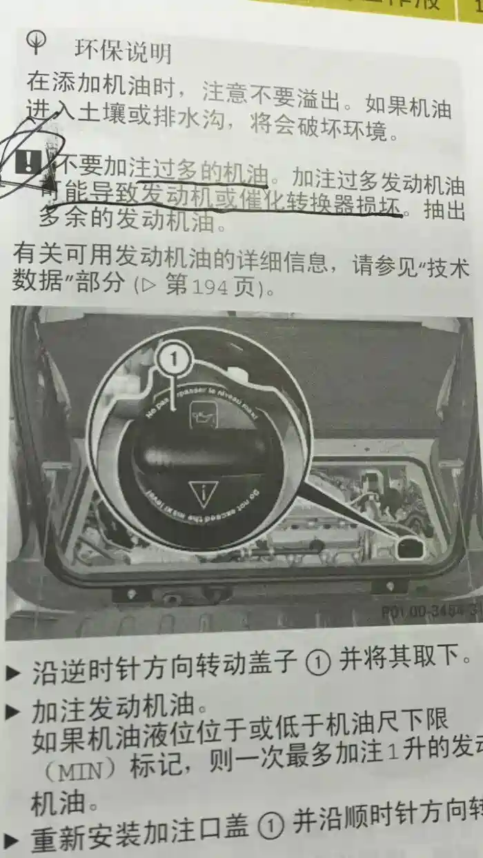 2.说明书里153页写明,机油超max可能会导致发动机或催化转换器损坏。