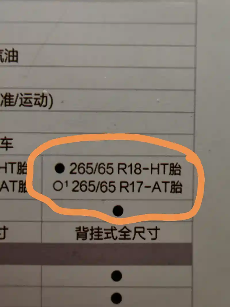问 请教各位高人,这是新40的高配轮胎,都是265 65,那17