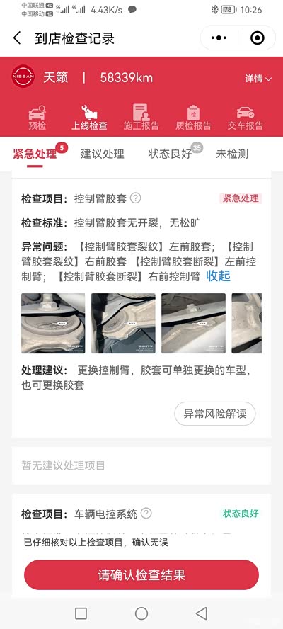 问 13款16年天籁下摆臂开裂。有必要更换么