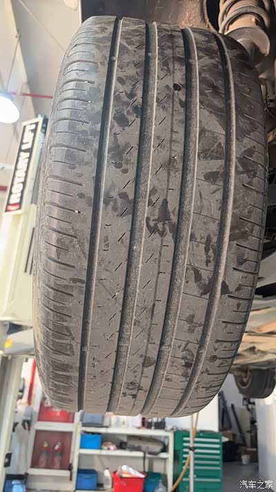看图片,轮胎花纹深度,已经低于5mm了,我也建议更换轮胎。通常都是4-6万公里更换轮胎,定期更换轮胎,也是为了你的安全。