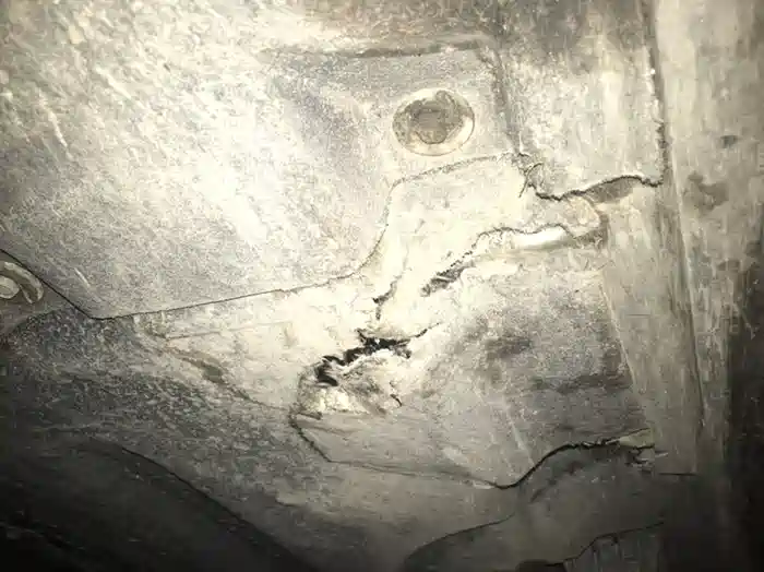 不知道什么时候碰破了地盘的护板,求问下各位高人,这是什么材质?去四儿子修大概要多少米?