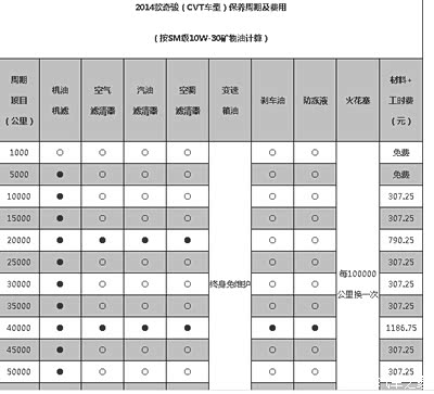 问 保养,请教一下 删除 推荐精华 置顶 取消置顶 关闭回复 打开回复 推荐编辑 楼主禁言 移动帖子 重置头像 操作记录 石河子车友4682834 0浏览 · 2017-03-05 10:11 变速箱油,刹车油,防冻液,都是什么时候保养,本人车快近4万公里了。还要做别的保养么? 举报 打开汽车之家 阅读体验更好 相关问题 更多 问车辆漏水是哪里的原因 0回答 问左边车门异响 0回答 问更换电瓶问题 0回答 问愁人的噪音,怎么办 0回答 问从哪能买到原厂配件? 0回答 问2025款奇骏上市? 0回答 全部回复 只看楼主 俊芝琦涵 关禁闭 已屏蔽 沃尔沃C30 机油滤清器 5000公里更换空气滤清器 5000公里更换汽油滤清器 1万公里更换空调滤清器 1万公里更换火花塞 3万公里更换正时皮带 6万-8万公里更换传动三角皮带 4万公里更换雨刮片 1年左右检查更换空调机干燥罐 8万公里或3年更换减震器 出现漏油检查更换轮胎 胎纹深度低于1.6毫米或达到磨损指示标记更换刹车片 3万-6万公里检查更换刹车盘 更换2-3套刹车片后更换电瓶 2年左右检查更换发动机机油 5000公里更换刹车油 4万公里左右更换防冻液 2年或6万公里更换变速箱油 5万-6万公里更换转向机油 6万公里更换 2017-03-05 10:13 回复 沙发 屏蔽此人 举报 删除 取消删除 禁言 重置头像 共有条对话 > zrpzlp 关禁闭 已屏蔽 eπ007 四万公里大保养,需要更换 机油、四滤、刹车油、防冻液就可了。手动挡变速箱油6万公里更换,自动挡变速箱油无需更换。附保养明细费用截图,仅供参考,希望有帮助。 2017-03-05 10:15 回复 板凳 屏蔽此人 举报 删除 取消删除 禁言 重置头像 共有条对话 > zrpzlp 关禁闭 已屏蔽 eπ007 自动挡保养明细 2017-03-05 10:16 回复 地板 屏蔽此人 举报 删除 取消删除 禁言 重置头像 共有条对话 > 隔壁店老张 关禁闭 已屏蔽 逍客 除了更换机油机滤外,需要对车辆进行常规检查,包括灯光、底盘、刹车、轮胎等,同时空气空调滤芯如果脏的话,就需要换掉了。轮胎建议做一个前后换位,如果磨损很不均匀,就需要做平衡定位了。刹车油也需要更换了,周期是2年或者4万公里。 2017-03-05 10:31 回复 屏蔽此人 举报 删除 取消删除 禁言 重置头像 共有条对话 > 乌拉嘿乌拉嘿 关禁闭 已屏蔽 奇骏 刹车油3万换,变速箱油8万换。防冻液3至5万换。 2017-03-05 10:40 回复 屏蔽此人 举报 删除 取消删除 禁言 重置头像 共有条对话 > 石河子车友4682834 楼主 关禁闭 已屏蔽 奇骏 俊芝琦涵 2017/03/05 10:13:44 发表在 沙发 机油滤清器 5000公里更换空气滤清器 5000公里更换汽油滤清器 1万公里更换空调滤清器 1万公里更换火花塞 3万公里更换正时皮带 6万-8万公里更换传动三角皮带 4万公里更换雨刮片 1年左右检查更换空调机干燥罐 8万公里或3年更换减震器 出现漏油检查更换轮胎 &nb...汽油滤清器怎么换?从来没提过,也没换过 2017-03-05 11:19 回复 举报 删除 取消删除 禁言 重置头像 共有条对话 > 俊芝琦涵 关禁闭 已屏蔽 沃尔沃C30 胡桃夹夹子子 2017/03/05 11:19:05 发表在 6楼 汽油滤清器怎么换?从来没提过,也没换过基础保养的时候,他一般都会帮你换的 2017-03-05 11:20 回复 屏蔽此人 举报 删除 取消删除 禁言 重置头像 共有条对话 > 秋夕2014 关禁闭 已屏蔽 海豚 俊芝琦涵 2017/03/05 10:13:44 发表在 沙发 机油滤清器 5000公里更换空气滤清器 5000公里更换汽油滤清器 1万公里更换空调滤清器 1万公里更换火花塞 3万公里更换正时皮带 6万-8万公里更换传动三角皮带 4万公里更换雨刮片 1年左右检查更换空调机干燥罐 8万公里或3年更换减震器 出现漏油检查更换轮胎 &nb...发动机空气滤清器5000公里一换是教科书版的坑爹吧 2017-03-05 13:09 回复 屏蔽此人 举报 删除 取消删除 禁言 重置头像 共有条对话 > 秋夕2014 关禁闭 已屏蔽 海豚 俊芝琦涵 2017/03/05 11:20:55 发表在 7楼 基础保养的时候,他一般都会帮你换的朋友,你进错论坛了,奇骏的汽油滤网是油泵一体的…… 2017-03-05 13:10 回复 屏蔽此人 举报 删除 取消删除 禁言 重置头像 共有条对话 > 秋夕2014 关禁闭 已屏蔽 海豚 胡桃夹夹子子 2017/03/05 11:19:05 发表在 6楼 汽油滤清器怎么换?从来没提过,也没换过奇骏的汽油滤网是一体的,不需要特意更换的…… 2017-03-05 13:10 回复 屏蔽此人 举报 删除 取消删除 禁言 重置头像 共有条对话 > 俊芝琦涵 关禁闭 已屏蔽 沃尔沃C30 秋夕2014 2017/03/05 13:09:30 发表在 8楼 发动机空气滤清器5000公里一换是教科书版的坑爹吧呵呵 2017-03-05 13:12 回复 屏蔽此人 举报 删除 取消删除 禁言 重置头像 共有条对话 > 桂A灰骏 关禁闭 已屏蔽 骐达TIIDA 胡桃夹夹子子 2017/03/05 11:19:05 发表在 6楼 汽油滤清器怎么换?从来没提过,也没换过别听他瞎掰,他这写的内容肯定是从哪个搜索引擎上复制粘贴过来的,现在很少车子的发动机还在使用正时皮带,这车子的汽油滤芯基本上也属于免维护的 2017-03-05 13:13 回复 屏蔽此人 举报 删除 取消删除 禁言 重置头像 共有条对话 > 秋夕2014 关禁闭 已屏蔽 海豚 桂A灰骏 2017/03/05 13:13:33 发表在 12楼 别听他瞎掰,他这写的内容肯定是从哪个搜索引擎上复制粘贴过来的,现在很少车子的发动机还在使用正时皮带,这车子的汽油滤芯基本上也属于免维护的别这么说,说不定只是进错论坛 2017-03-05 13:21 回复 屏蔽此人 举报 删除 取消删除 禁言 重置头像 共有条对话 > tongxiaoqi 关禁闭 已屏蔽 奇骏 按说明书做 其它不做 2017-03-05 13:53 回复