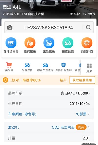 问 求救各位大神奥迪A4L识别码能看出是那款车吗? 删除 推荐精华 置顶 取消置顶 关闭回复 打开回复 推荐编辑 楼主禁言 移动帖子 重置头像 操作记录 gqn5605 0浏览 · 2025-02-26 14:49· 发布于山西 各位大神谁知道LFV3A28KXB30 61894奥迪A4L这个车辆代码能知道是什么版本的吗? 举报 打开汽车之家 阅读体验更好 相关问题 更多 问多少钱 0回答 问2025款豪华 0回答 问换车纠结中… 0回答 问A4前挡无法除雾 0回答 问防冻液更换问题 0回答 问索赔离合器归来 0回答 全部回复 只看楼主 山东的小伙 关禁闭 已屏蔽 宝骏560 你好,根据相关的识别码查询,这个车型是属于奥迪a4l自动技术型。①车型名称奥迪A4L2012款2.0TFSI自动技术型②厂商一汽奥迪参考价(元)暂无报价厂商指导价(元)36.98万③级别中型车环保标准国IV+OBD上市时间2011.08 2025-02-26 14:52 来自山东 回复 沙发 屏蔽此人 举报 删除 取消删除 禁言 重置头像 共有条对话 > 路痴考科三 关禁闭 已屏蔽 奥迪A7L 车300就能看出来 2025-02-27 10:01 来自吉林 回复 板凳 屏蔽此人 举报 删除 取消删除 禁言 重置头像 共有条对话 > 开开心心就好45289 关禁闭 已屏蔽 奥迪A6L 倒数第八位是生产年份,车是2011年生产的,B8 2025-02-27 13:14 来自吉林 回复 地板 屏蔽此人 举报 删除 取消删除 禁言 重置头像 共有条对话 > 北云霆 关禁闭 已屏蔽 这个咋查啊 2025-02-27 13:57 来自吉林 回复 屏蔽此人 举报 删除 取消删除 禁言 重置头像 共有条对话 > gqn5605 楼主 关禁闭 已屏蔽 天籁 奥迪A4L大家都更换什么牌子的轮胎? 2025-03-01 08:19 回复 举报 删除 取消删除 禁言 重置头像 共有条对话 > 还想在主楼增加内容?点击续写主楼内容 登录 参与更多互动 发表回复 打开App,查看更多评论 首 页 上一页 下一页 末 页 跳 转 取 消 还想在主楼增加内容?点击续写主楼内容 登录 参与更多互动 系统故障 发表回复 图片最多上传9张 微信好友 微信朋友圈 新浪微博 QQ好友 QQ空间 取消 相关推荐 加载中