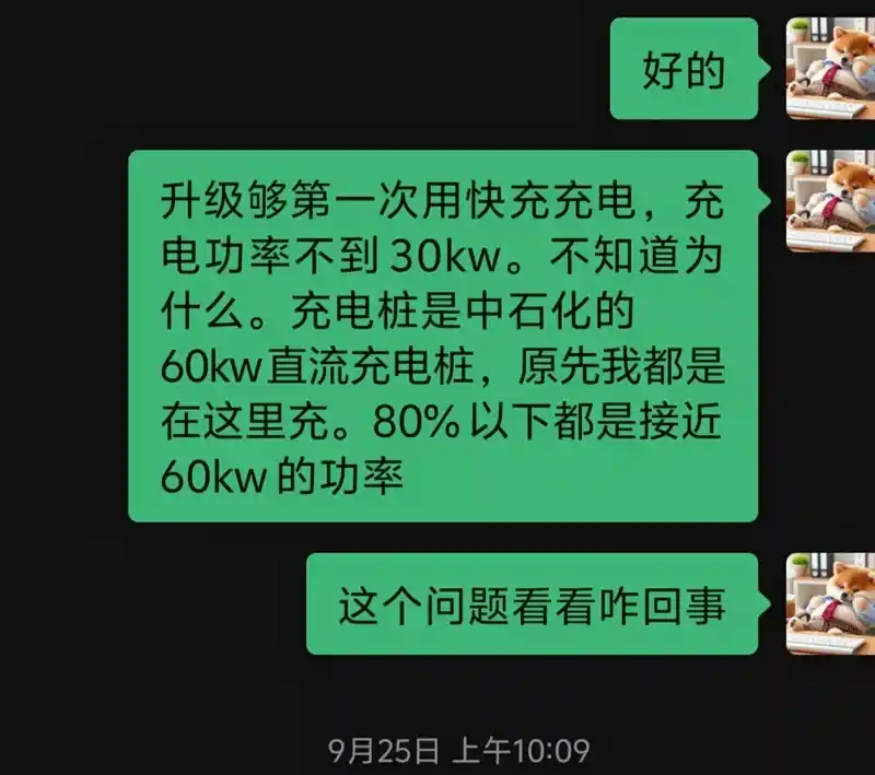 咨询一下各位et增程车主,9月份以后充电功率有没有下降?我是9月底提车的,家里没有充电桩,一直在公共充电桩和在单位随车充。公共充电桩大部分用中石化的60kw充电桩,当时充电功率在80%电量之前一般50多kw。从9月份开始,充电功率一直只显示30kw左右,充电功率降低了。大家有没有遇到?