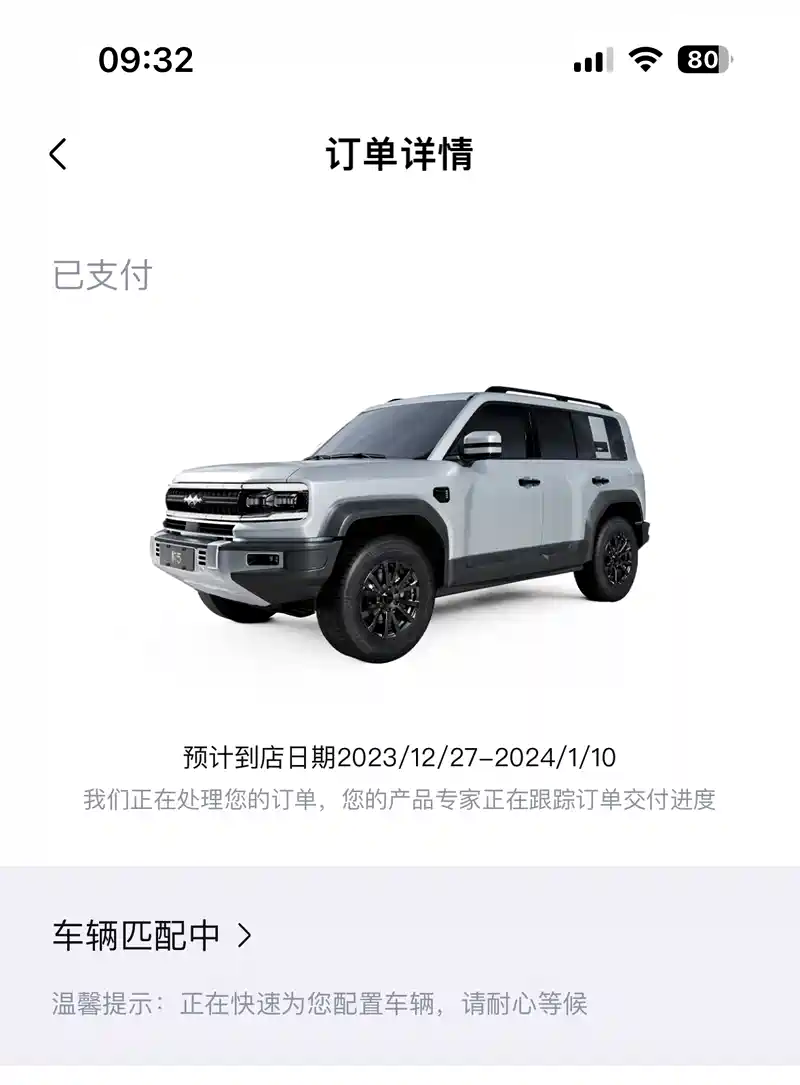 问 app显示车子预计12月底到1月初交付