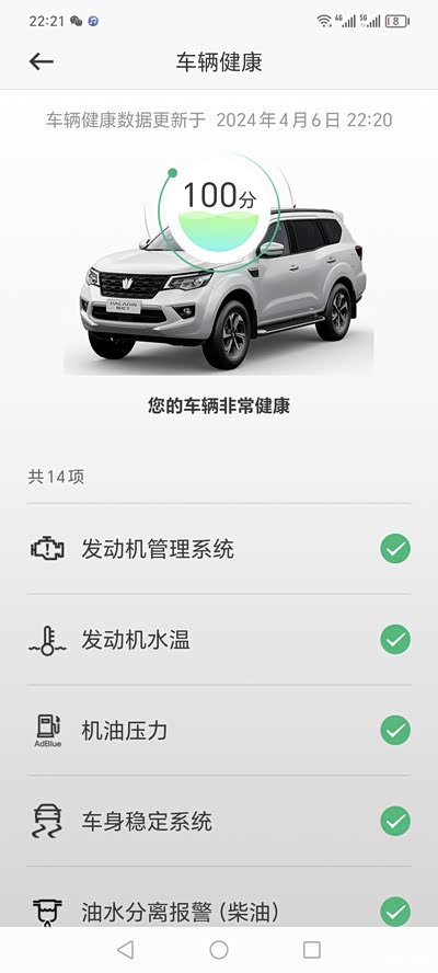 新帕拉丁2023年8学购买高配,目前10750公里,清明假期自驾回来途中突然出现警告??图标,我查看 APP上面显示车辆健康状况又是100分,这是什么情况,懂行的请告知一下,感谢!