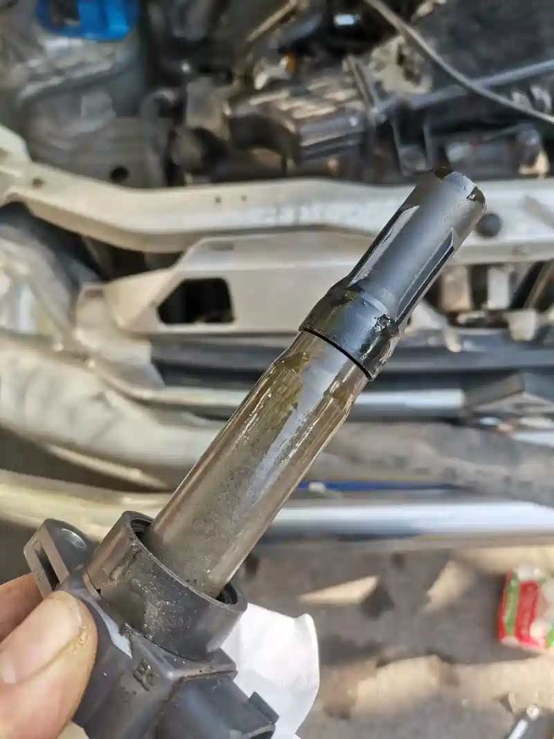 四个点火线圈,剩一个原厂的,15万公里了,干脆更换算啦,拆下来以后,居然发现了点火线圈上面很多机油,这是哪里出了问题啊?