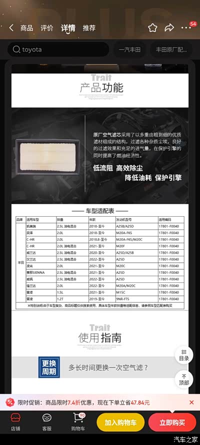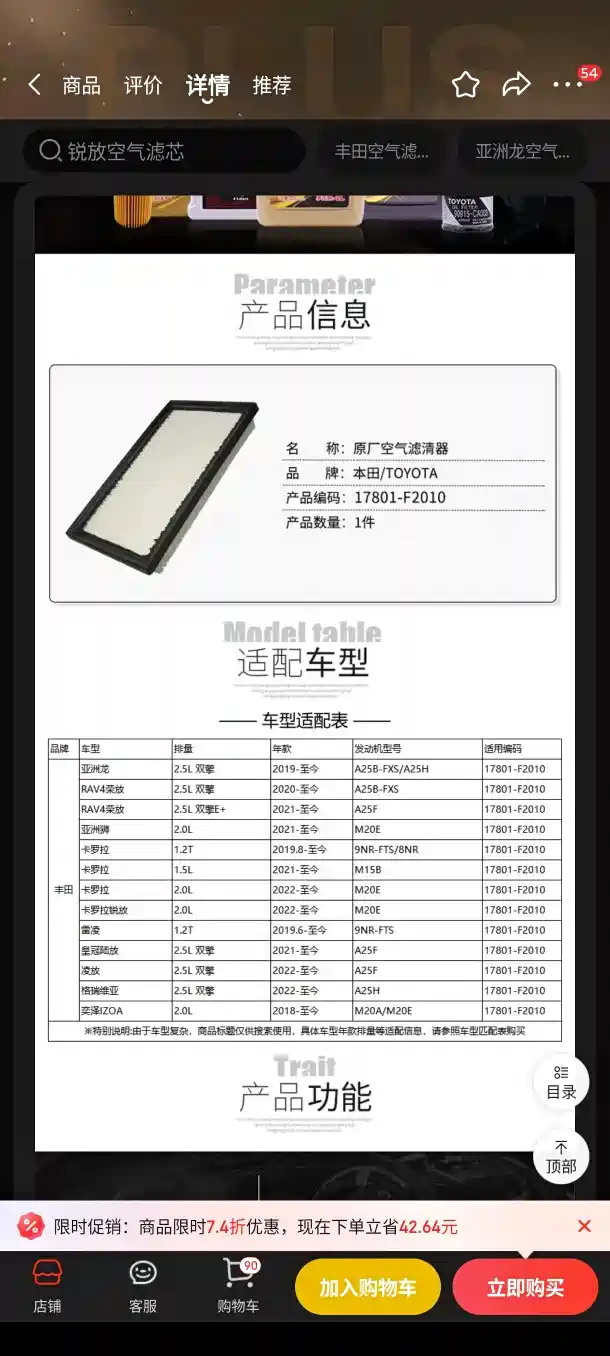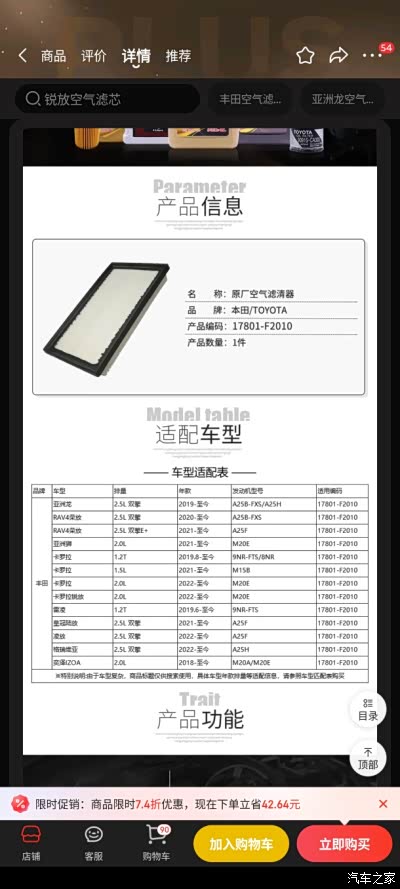 问了之前买的店家他们说也是用的凯美瑞的滤芯卖给荣放。上一个凯美瑞滤芯装上去已经用了一年了🙂,想问问大佬们这种情况用不用在意,车不在滤芯的适配列表里可以用吗
