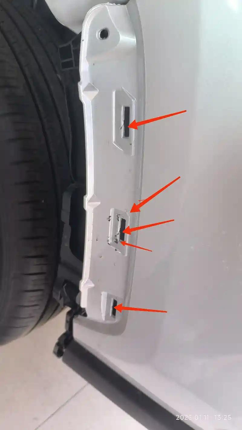 通过图片来看,这个地方并不需要单独修复的,因为这个本身就是在下面看不见,其次的话这里是使用的塑料材质,后期并不会生锈,而且一旦有泥巴或者水甩上去之后,这里也就看不到了,所以没有必要单独修复的。