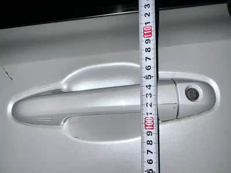 今天去量了一下前门的车门拉手的离地高度,左右都是102厘米,如图所示。