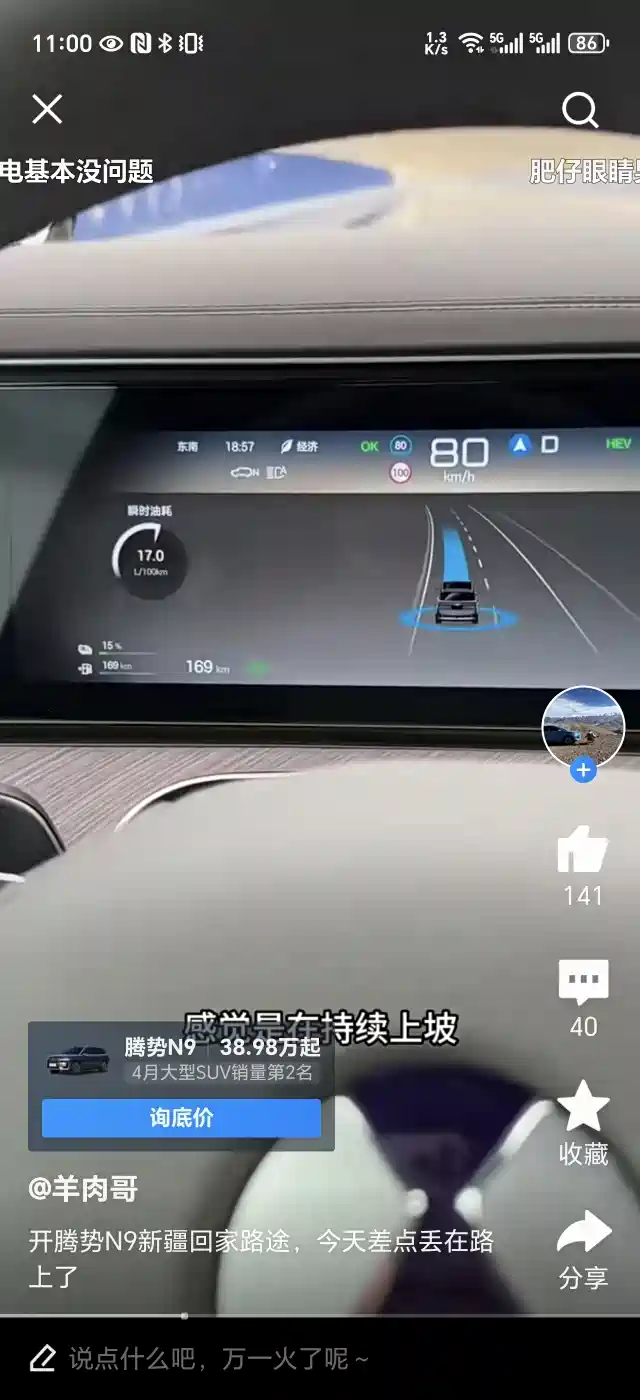 问 N9亏的油耗真这么高吗 删除 推荐精华 置顶 取消置顶 关闭回复 打开回复 推荐编辑 楼主禁言 移动帖子 重置头像 操作记录 优悦小叶 0浏览 · 2025-06-02 12:24· 发布于山东 求真车主分享一下,最近想入 举报 打开汽车之家 阅读体验更好 相关问题 更多 问续航 0回答 问2026款腾势n9 0回答 问馈电油耗你们的高不高 0回答 问头枕音响 0回答 问你会这个新技巧吗? 0回答 问座椅不归位的问题 0回答 全部回复 只看楼主 优悦小叶 楼主 关禁闭 已屏蔽 五菱星光S 我D9亏电120的速度油耗11,100的速度10L, 2025-06-02 12:27 回复 沙发 举报 删除 取消删除 禁言 重置头像 共有条对话 > 简单的很实在 关禁闭 已屏蔽 顶一下,长途多,油耗很关键。m9 高速油耗才 8 个不到 2025-06-02 22:24 来自河南 回复 板凳 屏蔽此人 举报 删除 取消删除 禁言 重置头像 共有条对话 > 济南车友9320871 关禁闭 已屏蔽 馈电6个油 2025-06-03 10:55 来自四川 回复 地板 屏蔽此人 举报 删除 取消删除 禁言 重置头像 共有条对话 > yunfeng6381 关禁闭 已屏蔽 腾势N9 瞬时油耗没有任何参考意义,N9是70升油箱加92,46.9度电,满油满电实际续航1000公里左右,经济型没问题。 2025-06-03 12:26 来自广东 回复 屏蔽此人 举报 删除 取消删除 禁言 重置头像 共有条对话 > 东乐了找 关禁闭 已屏蔽 120巡航,腾势在大型SUV里一定还是最省油的,单独把他和小车比,没啥意思,这车已经太省油了,珍惜吧,外网播放量五千万,点赞四十几万,外国人羡慕我们能有这样的车可以买,当然,他还有缺点,需要持续进步 2025-06-05 10:32 来自甘肃 回复 屏蔽此人 举报 删除 取消删除 禁言 重置头像 共有条对话 > 田豹豹 关禁闭 已屏蔽 豹5 有下定的宝子么??填写邀请码送精品牧高笛装备一套!包邮到家[泣不成声][泣不成声][泣不成声]老带新。看过来了 2025-06-05 10:51 回复 屏蔽此人 举报 删除 取消删除 禁言 重置头像 共有条对话 > 低张力活塞环 关禁闭 已屏蔽 我每个周末,都去小搓一顿,花四五百块……我的瞬时油耗可以高达四五百块钱!但我平时都在单位吃饭堂…有时还去老人家蹭一下,此时就是钱包发动机停机状态…零油耗!需要累加平均一下来看,才是我的常态油耗啊!并非片面简单500元x30天……难道就凭借周末打牙祭时买单的一瞬间,就定义我是一个吃喝无度,花钱无度,每天吃喝高达5百块的人? 2025-07-05 13:28 来自广东 回复 屏蔽此人 举报 删除 取消删除 禁言 重置头像 共有条对话 > 蒙蒙说四十万 关禁闭 已屏蔽 奔驰GLC 2025-07-05 15:17 来自辽宁 回复 屏蔽此人 举报 删除 取消删除 禁言 重置头像 共有条对话 > 还想在主楼增加内容?点击续写主楼内容 登录 参与更多互动 发表回复 打开App,查看更多评论 首 页 上一页 下一页 末 页 跳 转 取 消 还想在主楼增加内容?点击续写主楼内容 登录 参与更多互动 系统故障 发表回复 图片最多上传9张 微信好友 微信朋友圈 新浪微博 QQ好友 QQ空间 取消 相关推荐 加载中