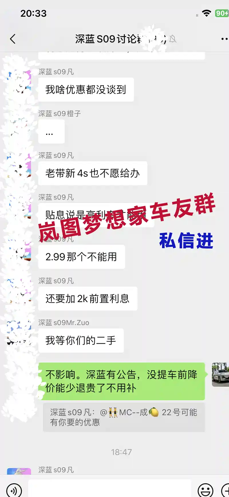 问 深蓝s09没提车降价可退差价? 删除 推荐精华 置顶 取消置顶 关闭回复 打开回复 推荐编辑 楼主禁言 移动帖子 重置头像 操作记录 刀哥车友群组建交流会 0浏览 · 2025-05-09 20:44· 发布于广东 深蓝s09没提车降价可退差价? 举报 打开汽车之家 阅读体验更好 相关问题 更多 问s09真的好看吗? 0回答 问这个广告打的很了 0回答 问重庆底价留言就行 0回答 问大电池要来了? 0回答 问啥时候出纯电版的车? 0回答 问座椅改进 0回答 还想在主楼增加内容?点击续写主楼内容 登录 参与更多互动 发表回复 打开App,查看更多评论 首 页 上一页 下一页 末 页 跳 转 取 消 还想在主楼增加内容?点击续写主楼内容 登录 参与更多互动 系统故障 发表回复 图片最多上传9张 微信好友 微信朋友圈 新浪微博 QQ好友 QQ空间 取消 相关推荐 加载中