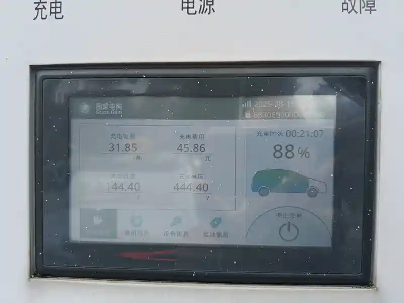 图片所示400伏快充平台下从38%充到88%仅20分钟,还是很给力的!
