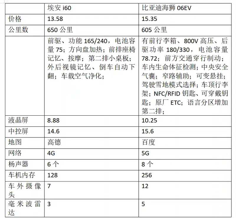 问 海狮06EV中配605和埃安i60高配650,大家觉得选择哪一个合适