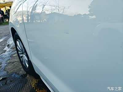 车门显然被开门磕的,侧面看有凹陷,车漆损伤如图