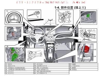 19号:红色10A,室内灯(阅读灯) 19号熔断后室内灯不亮,汽车遥控不能锁车,只能手动锁车