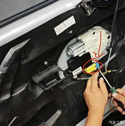 1、多半是那个黄色的大插头松了,拔下来看看是不是插头内的金属片压下去了,用牙签撬起来,然后喷点酒精,拿牙刷使劲刷,再重新插上,用绑扎带固定,插上车窗开关试一下。