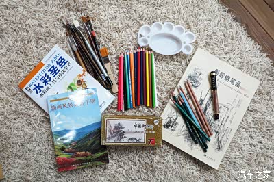 还有几本绘画的书籍,水彩 油画 国画 钢笔素描 还有彩笔 各种画笔 毛笔 准备一边旅行一边学画,万一美刀用完了就靠卖画生活旅行了