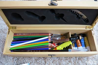 自己改造了一个红酒包装盒便携画材收纳箱,统统把我需要的耗材全部装进去了。