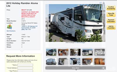 连续多日晚上都在浏览美国的房车网,越看越鸡冻,越看越膨胀,看到最后把准备买房子的想法看没了,热血沸腾的准备买一辆超级的大房车(计划可能总会有变化),美帝的房车咋那么便宜呢?!
