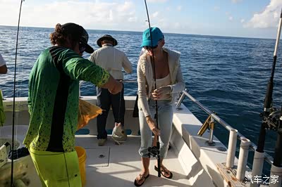实际能敢跑到上面和船老大逗鱼饵吃的,估计都是精英鱼,根本就不上我们的钩,所以看着鱼上下翻飞就是钓不到,我后来换了带铅坠的直接把鱼饵下到60-70米深地方,就能感觉老是有鱼咬钩了,关键时候关键的力量收杆就能钓到,但是我很仁慈,总是想让鱼自己上钩,所以一直在喂鱼!偶不是钓鱼的,是喂鱼来的!