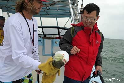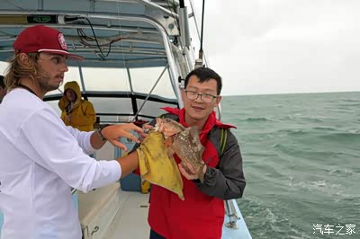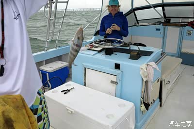 这是一条小船,只有6个人出海,我和儿子,另外是一家妈妈带三个孩子,一上船我就让儿子给我要件救生衣,这大风雨天出海,我还是很关爱自己的老命的,别是鱼没钓来,我成的鱼饵,那就太太遗憾了,世界那么大!还等着我去看看呢!可人家帅哥说根本用不着,我的心啊,就一直伴着发动机的突突声坐着游艇出发了!