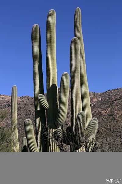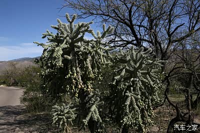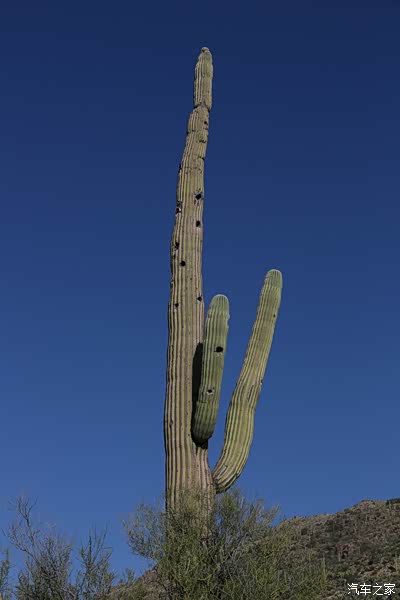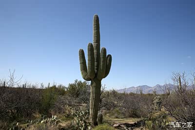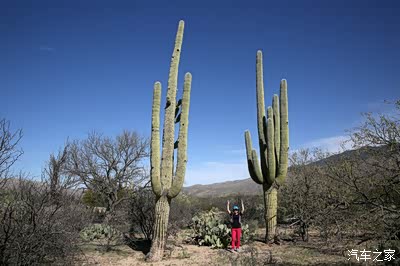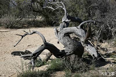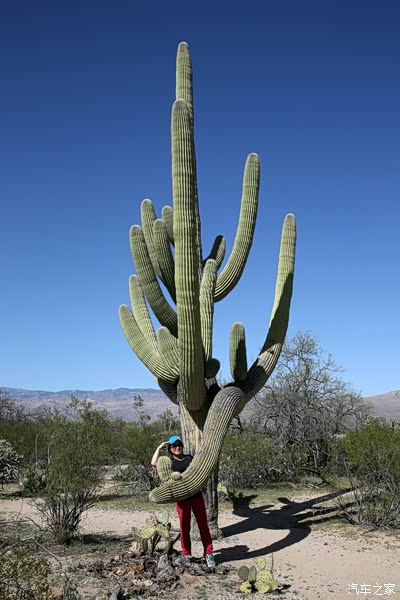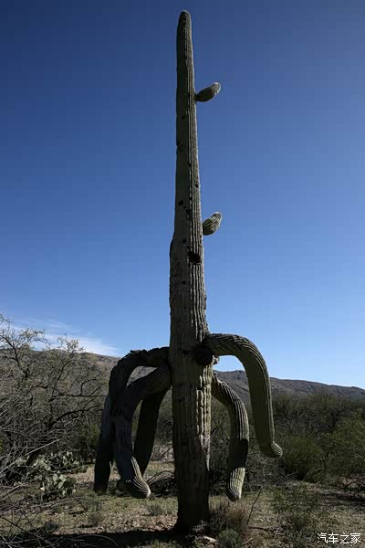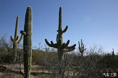 公园里很多这样的枯死的灌木,这是为保护仙人掌种植的,这些巨人柱如果在零下1度超过20小时就全部死亡了,此地曾经出现过这样的极端温度,所以后来种植了很多低矮的灌木。保护仙人掌幼苗,等仙人掌全部成林,灌木也就死掉了,所以这是保姆树。也是英雄哦。