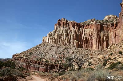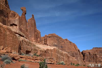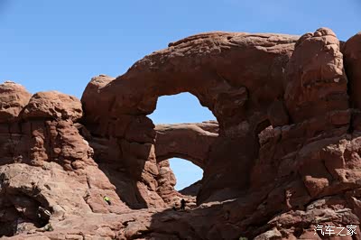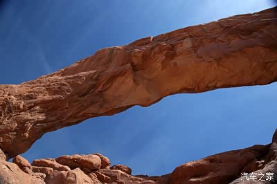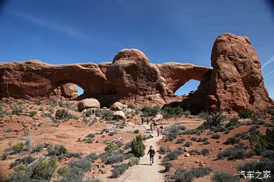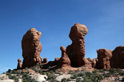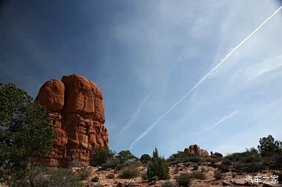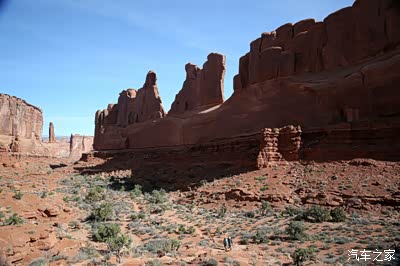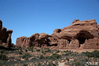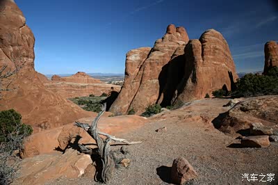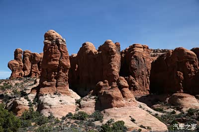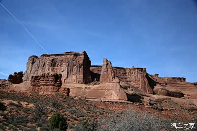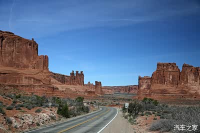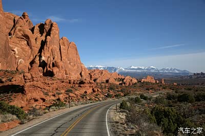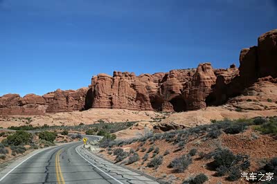 离开圆顶礁我们开上我们的大皮卡奔赴140英里外的拱门公园,