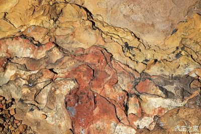 风化的地面,这里一定富含铁矿,很多石头表面已经只剩下黑红的铁锈,自然分化的结果把石头里的铁留下了,形成了一层厚厚的铁锈壳。